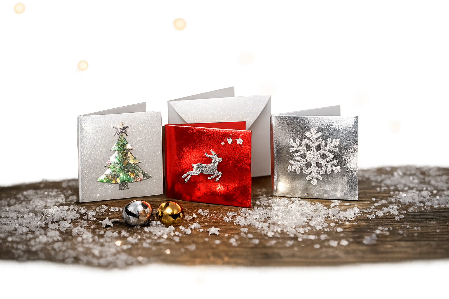 Styled in a cozy festive room, this card stands beside a twinkling tree adorned with golden snowflakes and miniature lights—evoking the joy of togetherness and the sparkle of holiday memories. Perfect for sending heartfelt wishes, this card is a tactile keepsake that celebrates the season’s quiet beauty.