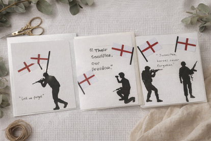 A special 3‑pack of my handmade England cards, created during D‑Day and finished today with fresh back labels.