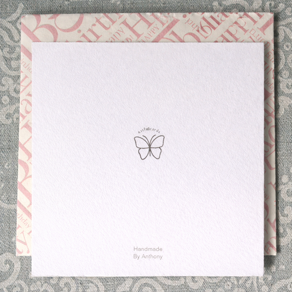 A calm, uplifting birthday design featuring a soft purple lotus pattern across the entire card front. The top message, let life surprise you, adds a gentle, encouraging touch, while the ribboned Happy Birthday sentiment brings a warm, handcrafted finish. Paired with a matching birthday‑print envelope, this set feels thoughtful, modern, and beautifully boutique.