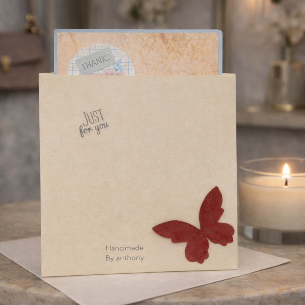 Stamped with Handmade by Anthony and butterfly logo